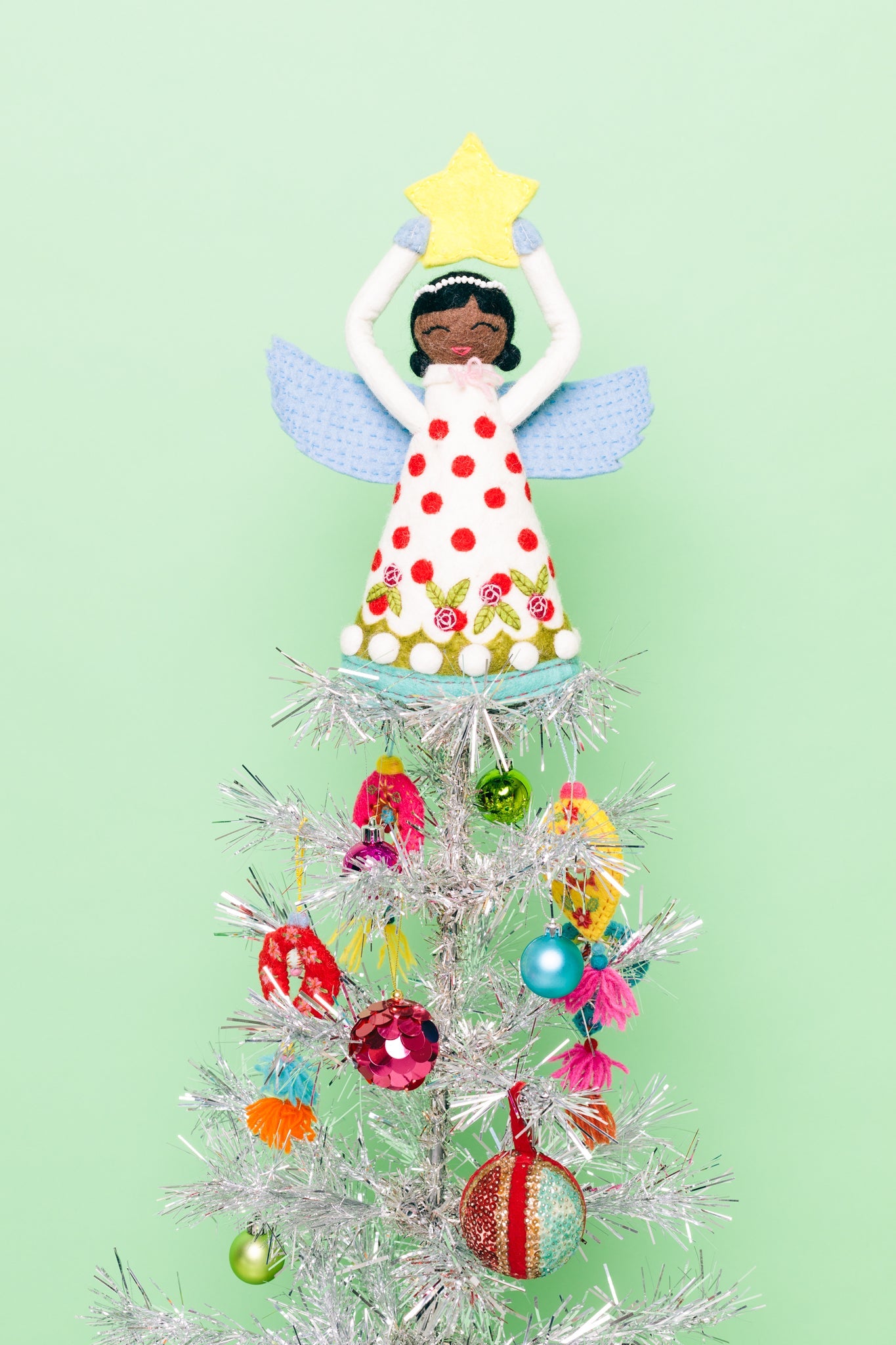 Can you think of anything cuter on your tree than this beautiful angel tree topper? Us either. Hand-felted with beautiful embroider. 15" tall. Handcrafted in Nepal.