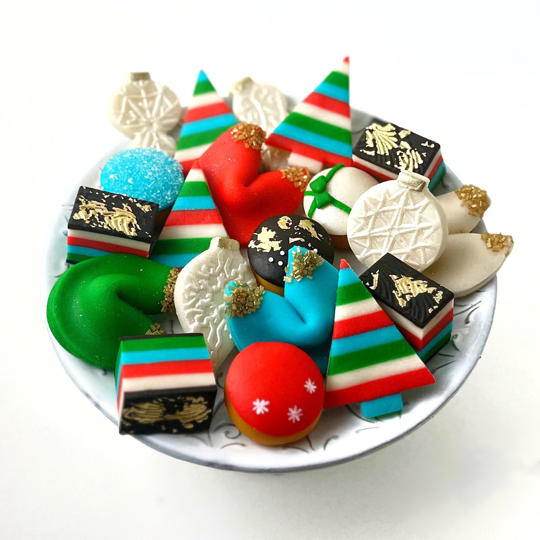 What you will get: An elegant gift box with 20 Christmas treats: 4 modern modern Christmas donuts, 4 Christmas rainbow cookies, 4 luxe snowflake ornaments, 4 sparkly Christmas fortune cookies and 4 striped Christmas trees (designed just for this collection!). Note the color and shape of the gift box may vary.